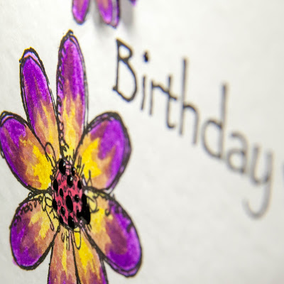 Hi! Here's a card inspired by this week's Less Is More challenge. I stamped the flowers and sentiment, then stamped another small flower on a scrap of card, to layer about the small flower on the card. I really don't like fussy cutting, but I like the extra dimension it has given. I coloured with inks and a water brush, inspired by the colours at the Paper Play challenge, although I had to mix a couple of the colours as I didn't quite have anything that matched. I added some Nuvo Drops to the flower centres to make them stand out a little bit more, and used a Wink of Stella brush to add some shimmer to the flowers, although it hasn't shown up very well on the photos!